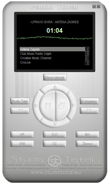 Radio Total je jedinstveni player online radio stanica. U bazi programa nalazi se više od 1200 radio stanica razvrstanih prema državama (Hr, Slo, BiH, Srb, Cg), te više od 50 glazbenih stilova.
